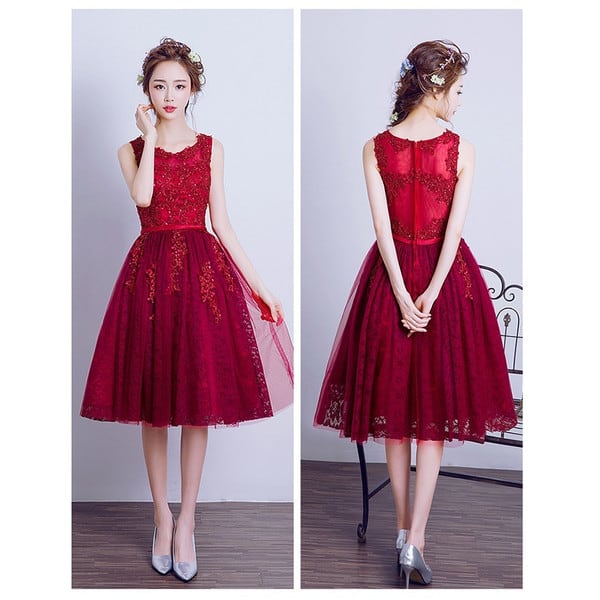 パーティードレス 結婚式 ドレス 二次会 花嫁 花嫁ドレス ワンピース 結婚式 パーティー ドレス 演奏会 フォーマルドレス ハイウエスト 女子会 発表会 成人式 卒業式 謝恩会 ワインレッド スパンコール 膝丈 着痩せ