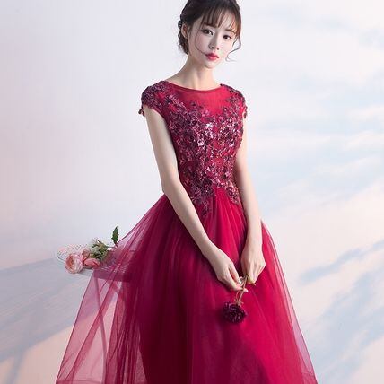 赤チュール フレアパーティードレス 結婚式 二次会 演奏会 衣装