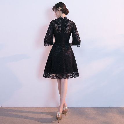 黒レースパーティードレス 膝丈 ブラック 結婚式 二次会 発表会