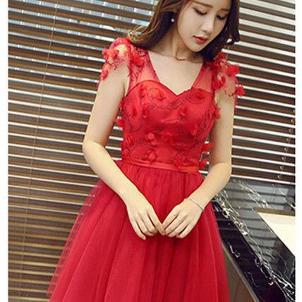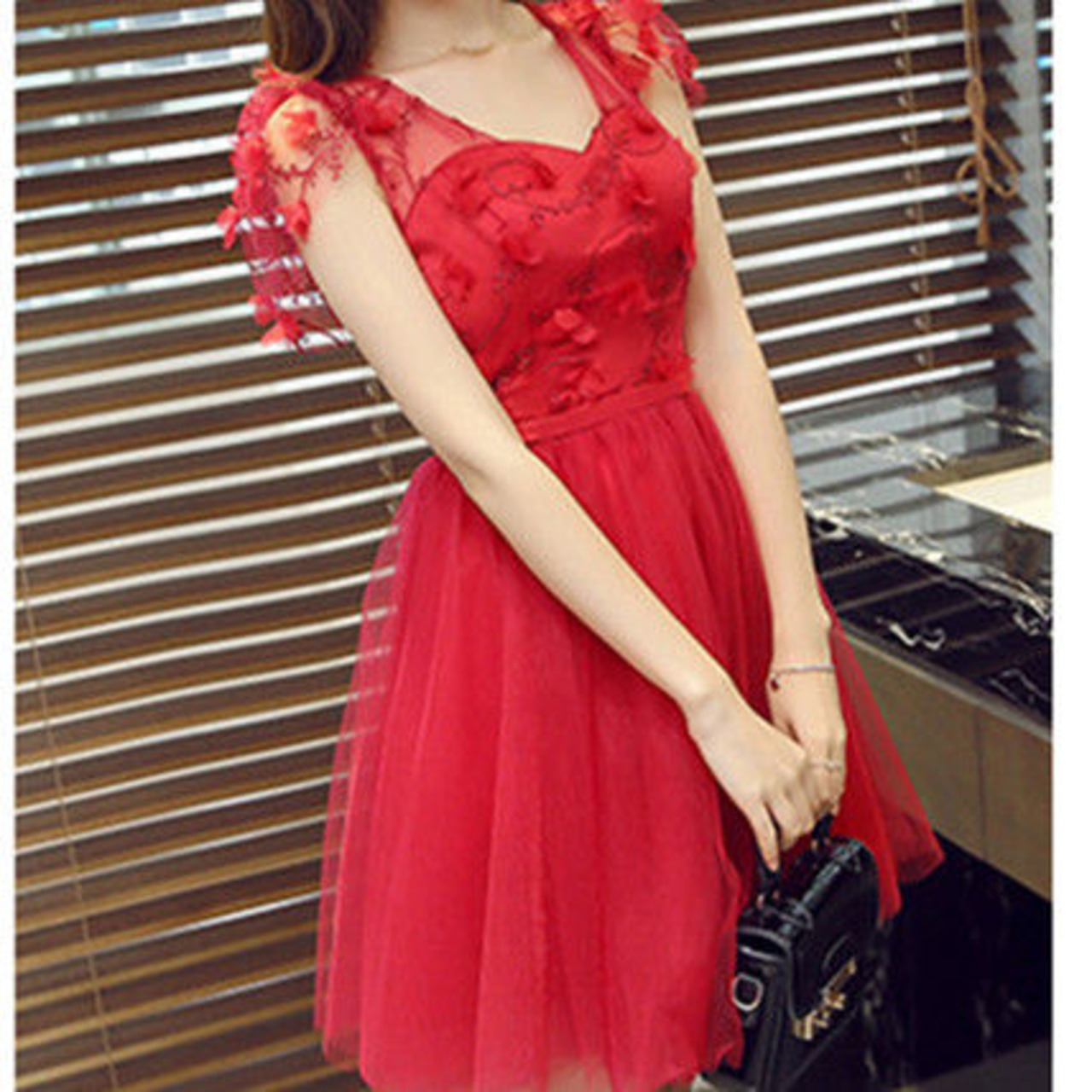 赤透け感がセクシーな ミニパーティードレス 結婚式キャバ衣装 E
