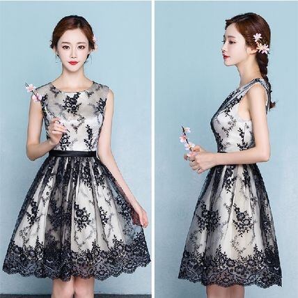 可愛いノースリーブパーティードレス レース 結婚式 二次会 衣装