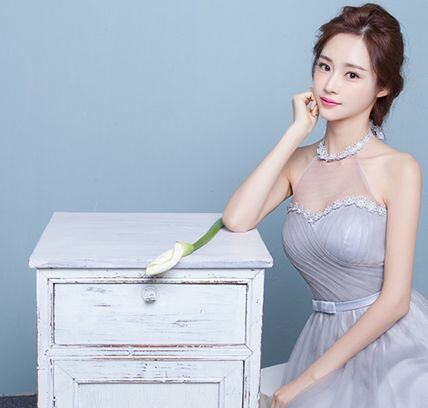 シルバーグレー後ろ編み上げのパーティドレス結婚式二次会 D