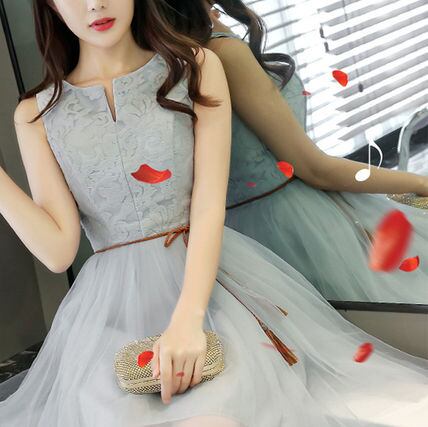 お嬢様風ふんわりチュールパーティードレス 結婚式発表会衣装 D