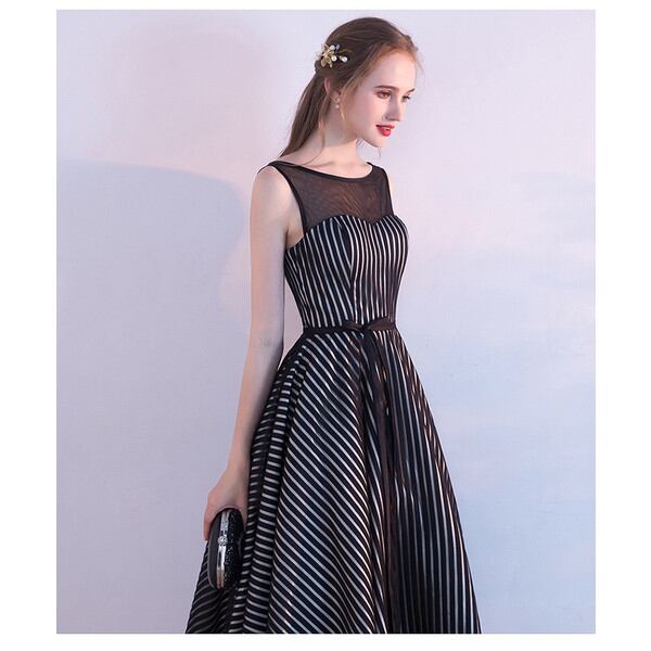 パーティードレス 結婚式 ドレス ミモレ丈 二次会 花嫁 花嫁ドレス ミモレ ブライズメイドドレス ワンピース 結婚式 パーティドレス 黒 パーティー ドレス フォーマルドレス ストライプ 演奏会 発表会 お呼ばれ 着痩せ