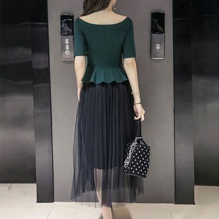 XL:着丈49、胸囲75、上ウエスト73、袖丈15、スカート丈82、下ウエスト72